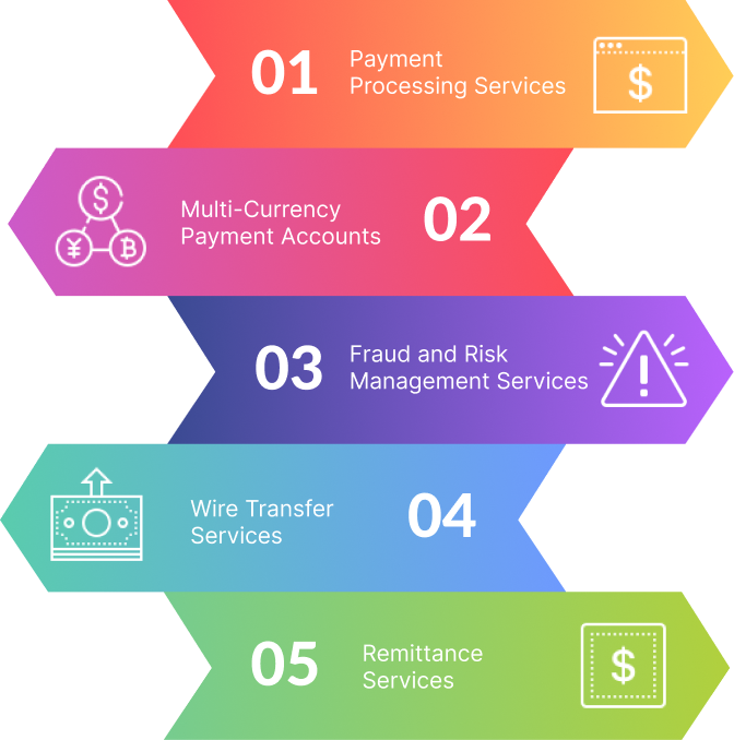 Our suite of services offers businesses the tools they need to excel in today's global economy. From secure payment processing and multi-currency accounts to fraud prevention and efficient fund transfers, we are here to simplify and elevate your business's financial operations. Trust us to provide reliable, intelligent, and convenient solutions for your payment and money transfer needs.